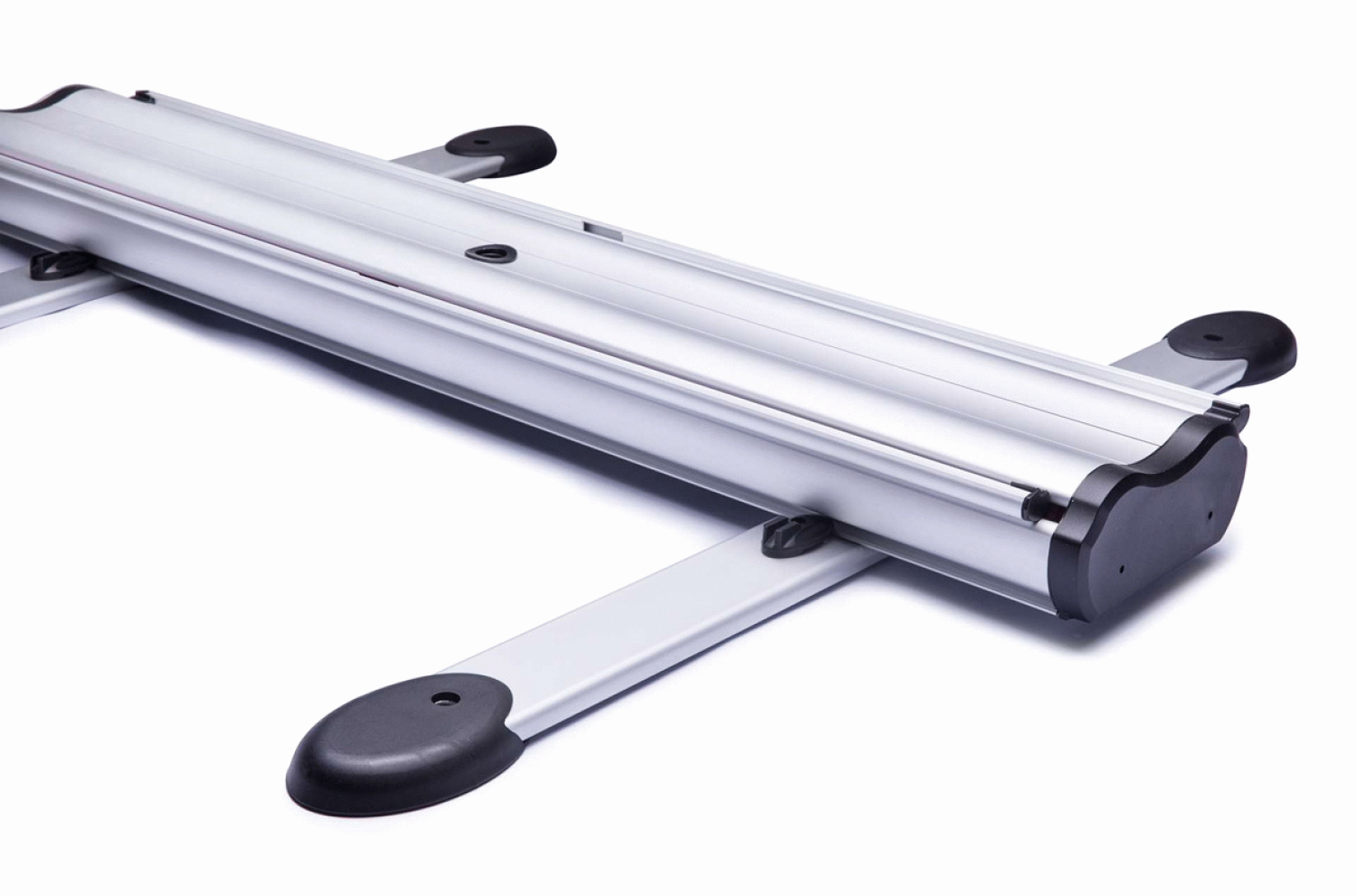 Součástí rollupu je brašna, poloteleskopická tyč a odnímatelné nohy.Tento rollup systém je určen pro dva bannery o velikosti 100 × 200 cm. Banner není součástí rollupu.
