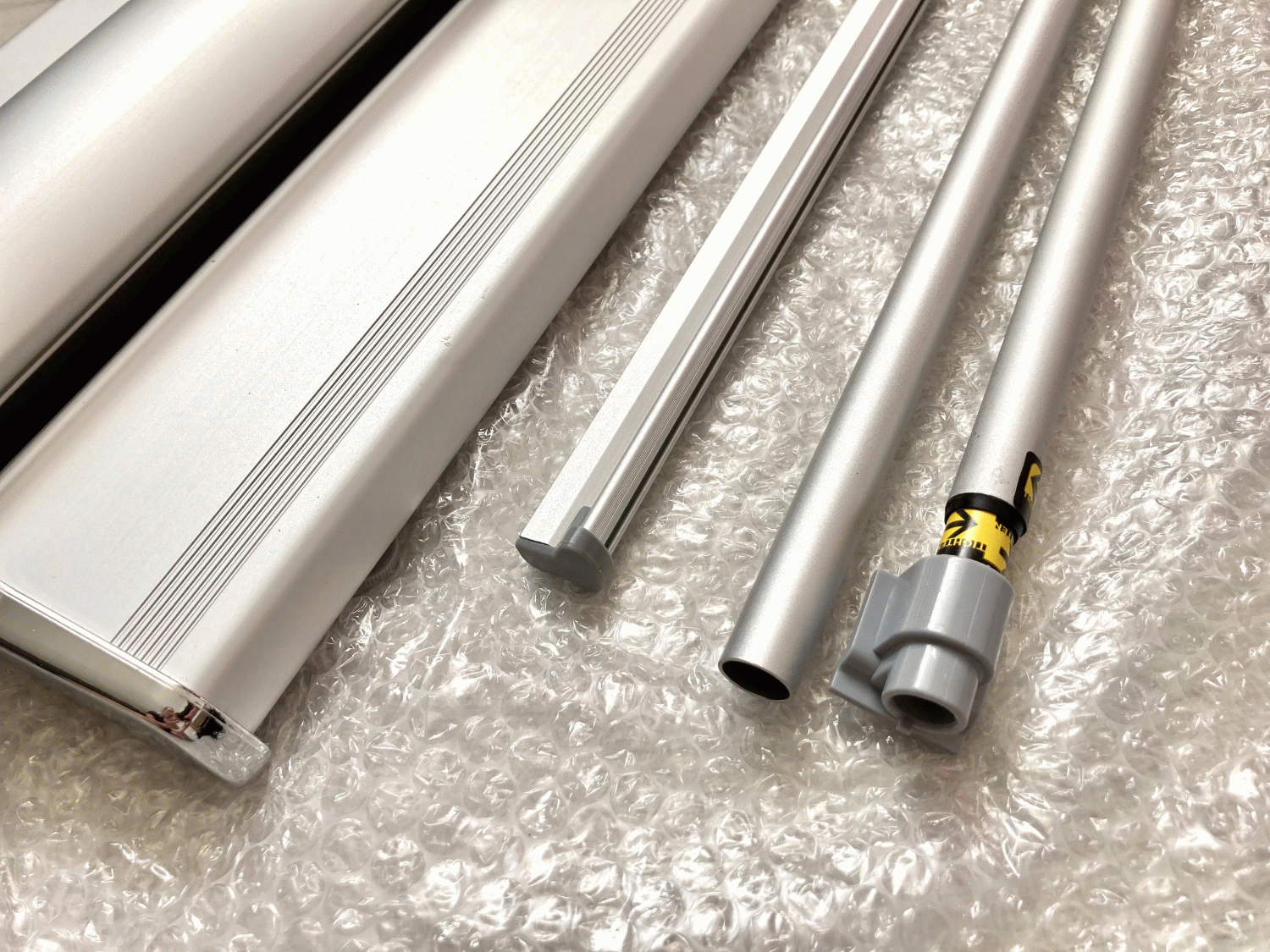 Součástí rollupu je poloteleskopická tyč a brašna pro pohodlnou přepravu. Ke stabilizaci na nerovném povrchu slouží distanční šrouby ve spodní části. Tento rollup systém je určen pro banner 100 × 200 cm. Banner není součástí rollupu.