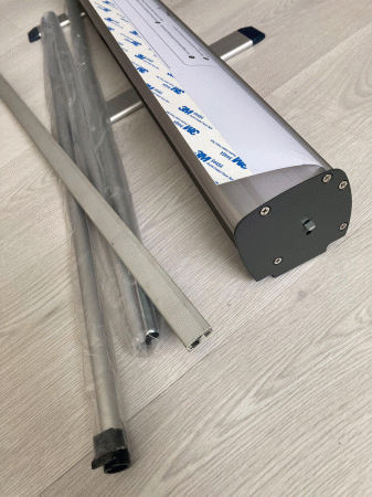 Jedná se o repasovaný rollup systém o šířce 100 cm, který byl použitý jen několikrát a neexistuje pro něj další využití. My jsme jej připravili k dalšímu použit...