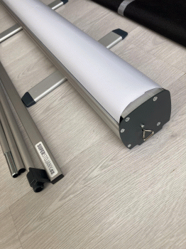 Tento rollup systém si již něco odpracoval, ale stále funguje jak má, jen pro něj není další využití. My jsme ho očistili a připravili na další použití, protože věříme, že někomu z Vás ještě mnohokrát poslouží. Přiložené fotografie patří k tomuto repasovanému rollup systému.