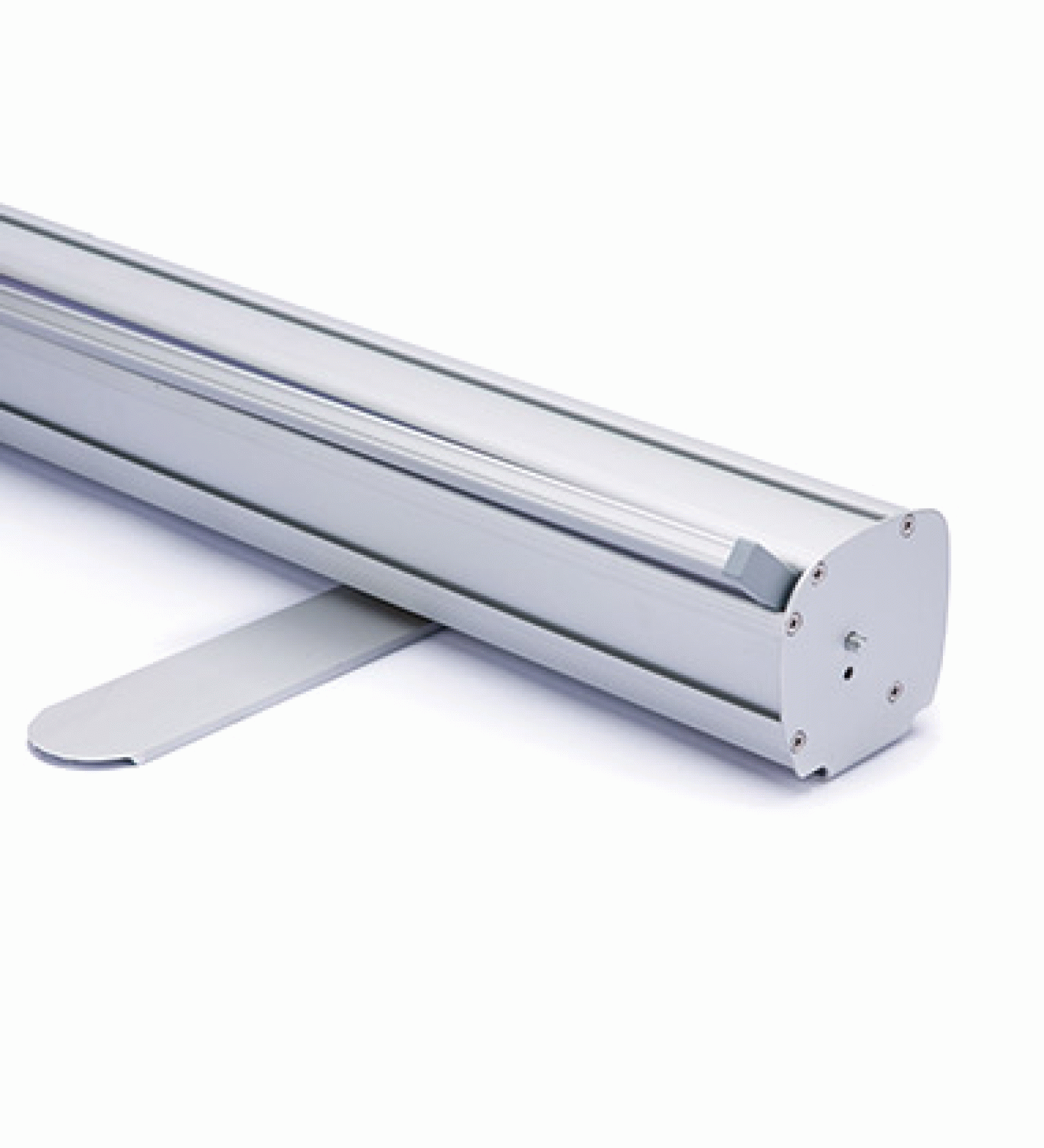 Jedná se o lehký kompaktní rollup systém Standard BASIC o šířce 100 cm. Stabilitu zajišťují 2 podpěrné otočné nohy. Součástí rollup systému je skládací podpěrná tyč a přepravní taška. Rollup umíme dodat samostatně i včetně potisku, který můžete objednat na stránce Potisk rollup fólie Standard.