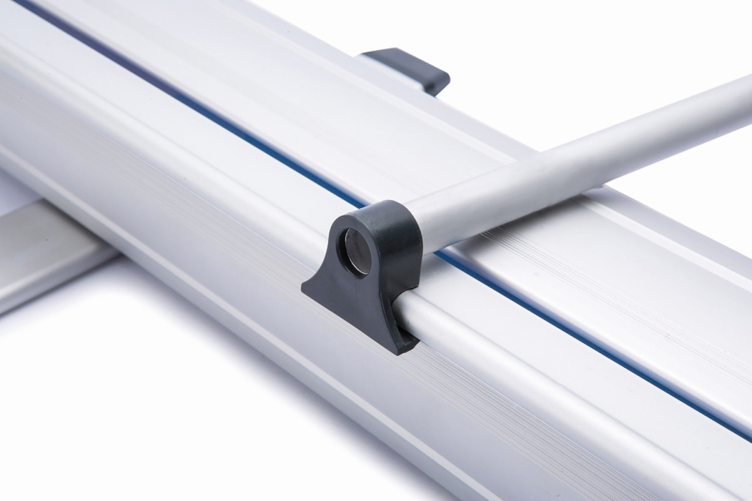 Součástí rollupu je poloteleskopická tyč a brašna pro jednoduchou přepravu. Rollup systém má otočné stabilizační nohy s plastovými náběhy pro dobrou stabilizaci a je určen pro banner 80 × 200 cm. Banner není součástí rollupu.