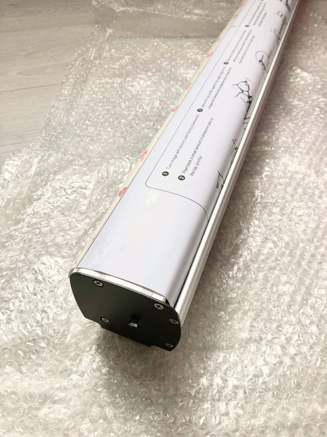 Součástí rollupu je poloteleskopická tyč a brašna pro jednoduchou přepravu. Rollup systém má otočné stabilizační nohy s plastovými náběhy pro dobrou stabilizaci a je určen pro banner 85 × 200 cm. Potik fólie není součástí rollupu.